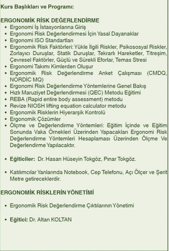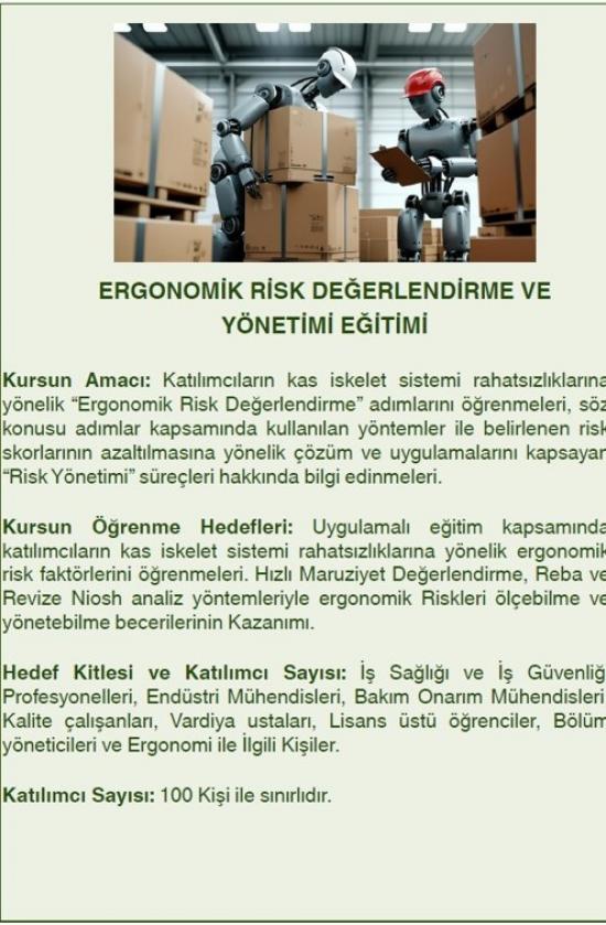- Üniversitemiz Kalite Çalışmaları çerçevesinde “Sağlıklı Yaşam” başlığı altında Ergonomik Risk Değerlendirme ve Yönetimi Eğitimi gerçekleştirilmiştir.